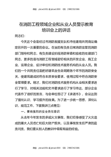在消防工程领域企业和从业人员警示教育培训会上的讲话.docx