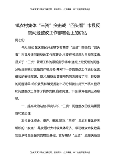 镇农村集体三资突击战回头看市县反馈问题整改工作部署会上的讲话.docx