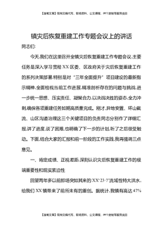 镇灾后恢复重建工作专题会议上的讲话.docx