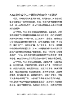 XXX商会成立二十周年纪念大会上的讲话.docx