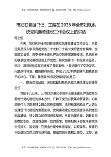 市妇联党组书记、主席在2025年全市妇联系统党风廉政建设工作会议上的讲话.docx