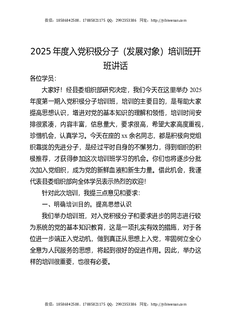 2025年度入党积极分子(发展对象)培训班开班讲话.docx
