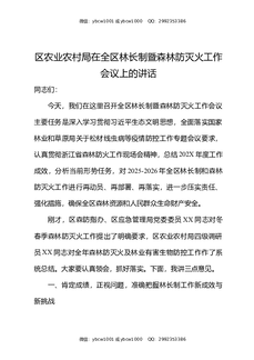 区农业农村局在全区林长制暨森林防灭火工作会议上的讲话.docx