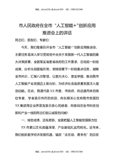 市人民政府在全市人工智能创新应用推进会上的讲话.docx