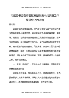 市纪委书记在市委巡察整改集中约谈暨工作推进会上的讲话.docx