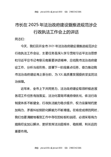 市长在2025年法治政府建设暨推进规范涉企行政执法工作会上的讲话.docx