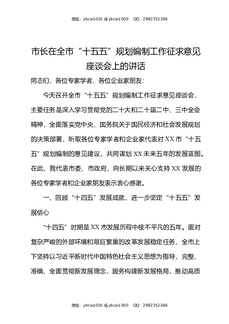 市长在全市十五五规划编制工作征求意见座谈会上的讲话.docx
