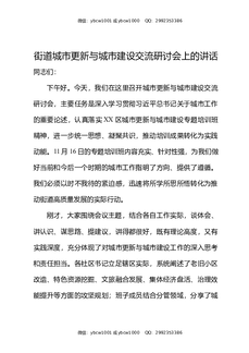 街道城市更新与城市建设交流研讨会上的讲话.docx