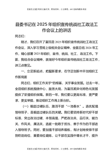 县委书记在2025年组织宣传统战社工政法工作会议上的讲话.docx