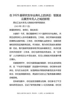 在2025届研究生毕业典礼上的讲话:智翼凌云展芳华无人之域启新程.docx