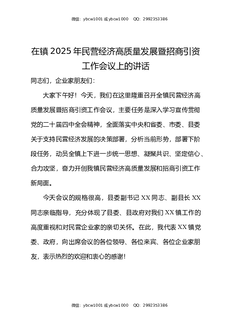 在镇2025年民营经济高质量发展暨招商引资工作会议上的讲话.docx