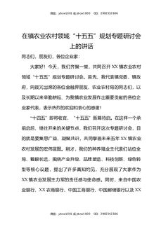 在镇农业农村领域十五五规划专题研讨会上的讲话.docx
