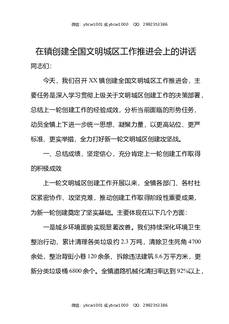 在镇创建全国文明城区工作推进会上的讲话.docx