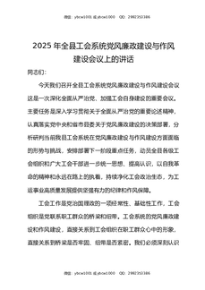 2025年全县工会系统党风廉政建设与作风建设会议上的讲话.docx
