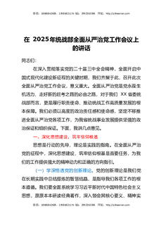 在2025年统战部全面从严治党工作会议上的讲话.docx
