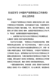 在全区学习《中国共产党思想政治工作条例》会议上的讲话.docx