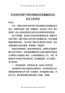 在全区新任职干部任前集体谈话暨廉政谈话会议上的讲话.docx