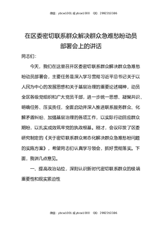 在区委密切联系群众解决群众急难愁盼动员部署会上的讲话.docx