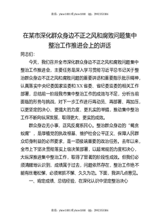 在某市深化群众身边不正之风和腐败问题集中整治工作推进会上的讲话.docx