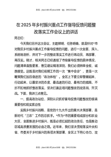 在2025年乡村振兴重点工作督导反馈问题整改落实工作会议上的讲话.docx