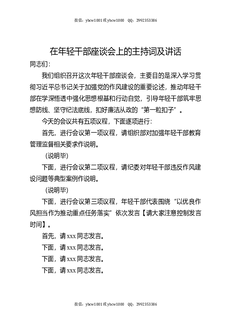 在年轻干部座谈会上的主持词及讲话.docx