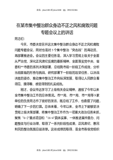 在某市集中整治群众身边不正之风和腐败问题专题会议上的讲话.docx