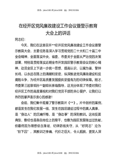 在经开区党风廉政建设工作会议暨警示教育大会上的讲话.docx