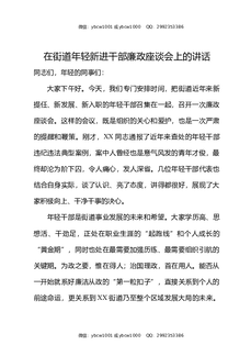 在街道年轻新进干部廉政座谈会上的讲话.docx