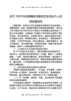 2025年巡视整改专题民主生活会对照检查材料.docx