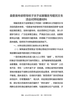 县委宣传部领导班子关于巡察整改专题民主生活会对照检查材料.docx