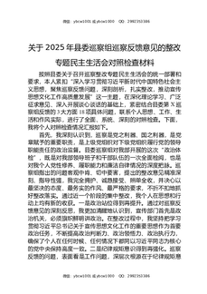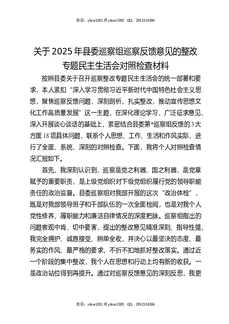 关于2025年县委巡察组巡察反馈意见的整改专题民主生活会对照检查材料.docx