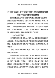 区司法局局长关于区委巡察反馈问题整改专题民主生活会对照检查材料.docx