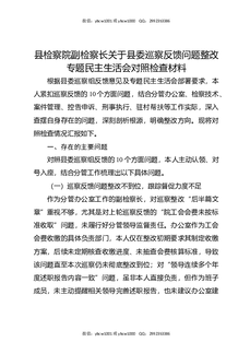 县检察院副检察长关于县委巡察反馈问题整改专题民主生活会对照检查材料.docx