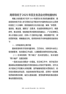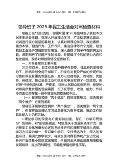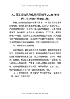 XX县工业和信息化局领导班子2025年度民主生活会对照检查材料.docx