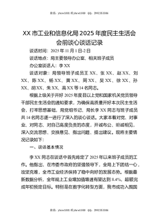 XX市工业和信息化局2025年度民主生活会会前谈心谈话记录.docx