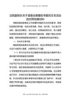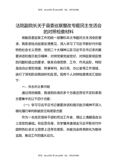 法院副院长关于县委巡察整改专题民主生活会的对照检查材料1.docx
