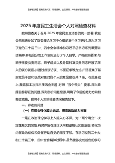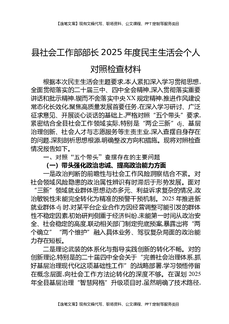 县社会工作部部长2025年度民主生活会个人对照检查材料.docx