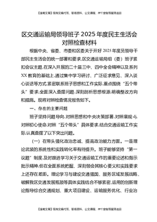 区交通运输局领导班子2025年度民主生活会对照检查材料.docx
