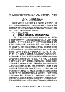 市儿童福利院党支部书记2025年度民主生活会个人对照检查材料.docx