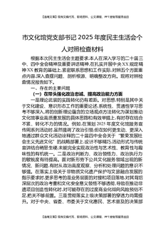 市文化馆党支部书记2025年度民主生活会个人对照检查材料.docx