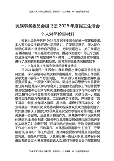 民族事务委员会党组书记2025年度民主生活会个人对照检查材料.docx