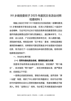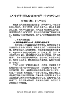 XX乡镇党委班子2025年度民主生活会对照检查材料1.docx