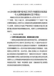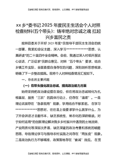 XX乡党委书记2025年度民主生活会个人对照检查材料(五个带头):铸牢绝对忠诚之魂,扛起兴乡富民之责.docx