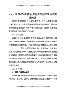 XX乡镇2025年度党员领导干部民主生活会实施方案.docx