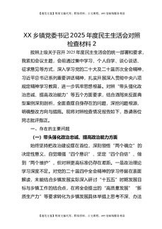 XX乡镇党委书记2025年度民主生活会对照检查材料2.docx