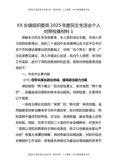 XX乡镇组织委员2025年度民主生活会对照检查材料.docx
