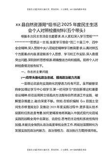 XX县自然资源局党组书记2025年度民主生活会个人对照检查材料(五个带头).docx