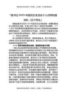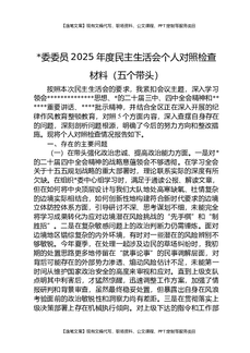 党委委员2025年度民主生活会个人对照检查材料(五个带头).docx