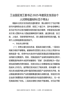 工业园区党工委书记2025年度民主生活会个人对照检查材料(五个带头).docx