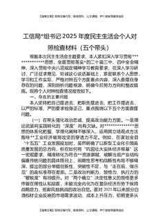 工信局党组书记2025年度民主生活会个人对照检查材料(五个带头).docx